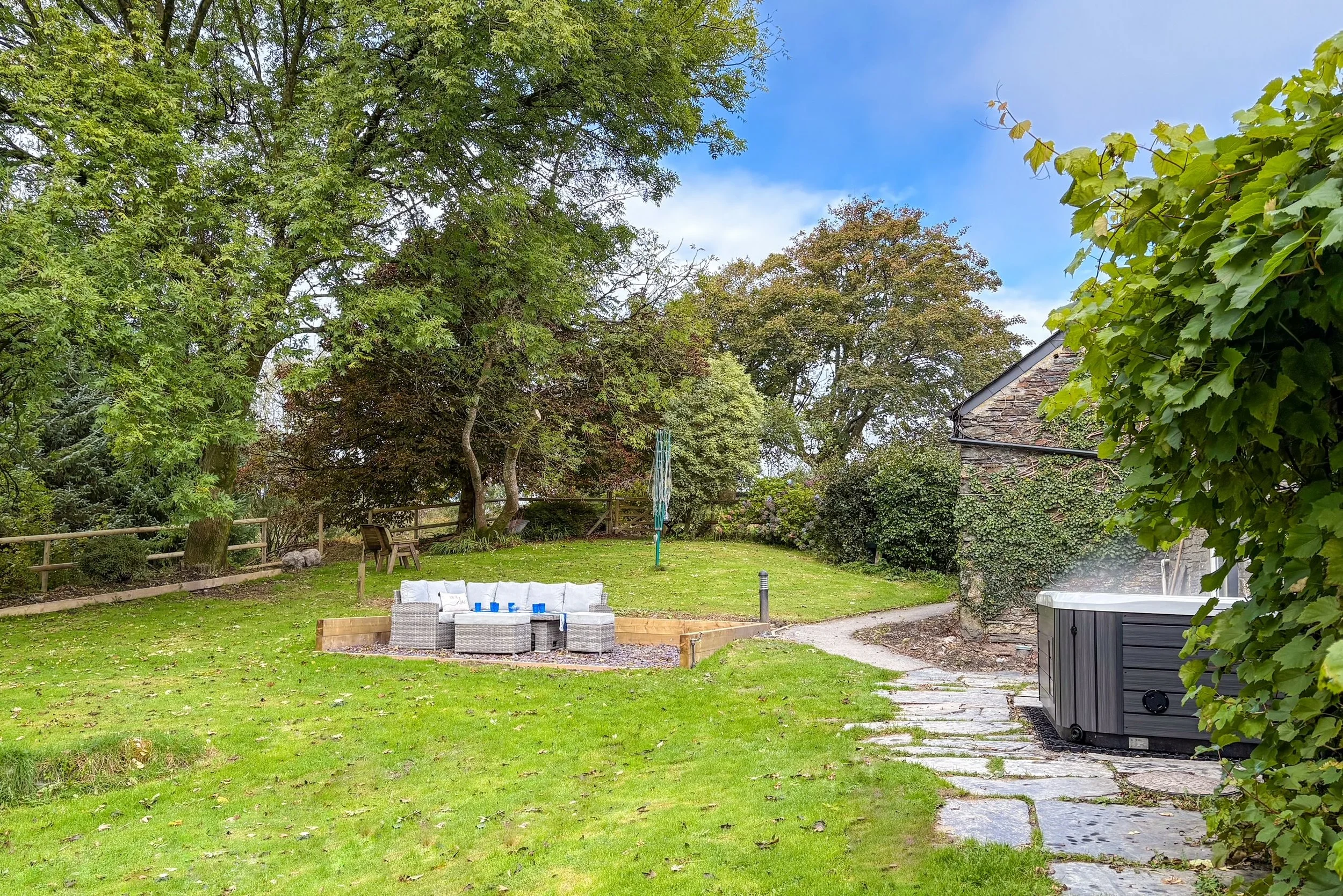 The Cottage has a wonderful garden with outdoor seating area and a six-seater Hot Tub, Perfect for a relaxing escape to the Cornish Countryside.